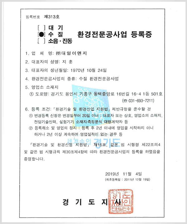 ȯ°æ°øÀü¹®°ø»ç¾÷ µî·ÏÁõ