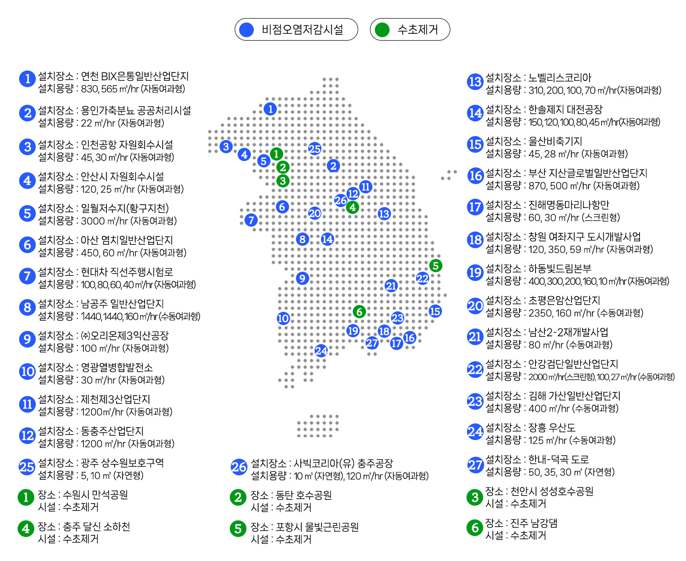 • 2010³â ÀÌ·¡·Î ¾à 400¿©°³ »ç¾÷ÀåÀ» ´ë»óÀ¸·Î ºñÁ¡¿À¿°Àú°¨½Ã¼³, Àú·ùÁ¶, Àú¿µÇâ°³¹ß½Ã¼³ µî 600¿© °³¼ÒÀÇ ½Ã¼³ ±¸Ãà